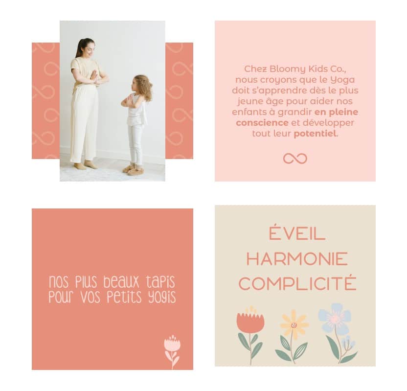 Création de l’identité visuelle et feed Instagram de la marque Bloomy Kids Co.